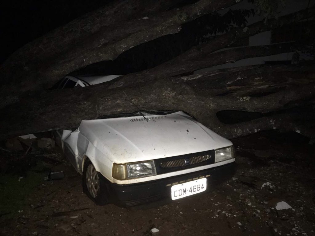 Árvore cai e atinge carro durante temporal em Bela Vista