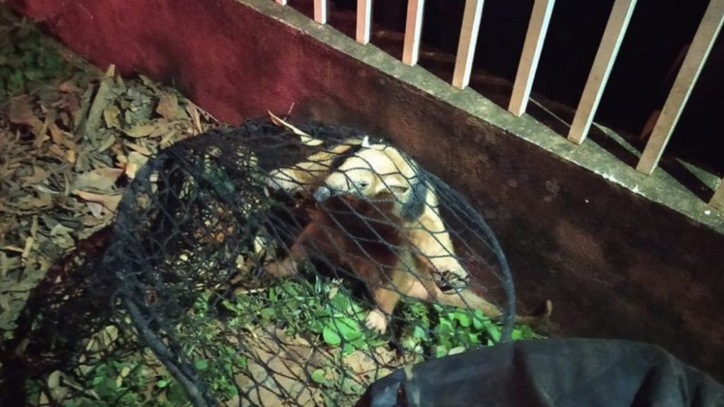Acuado por cachorros, tamanduá-mirim é resgatado em residência de Bela Vista