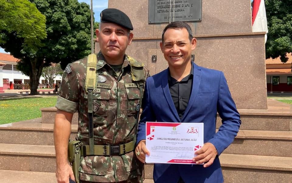 Durante a sessão ordinária desta quarta-feira (03), o vereador Oraldino Centurião (PSDB) apresentou Moção de Aplausos ao Comandante do 10º RC – MEC, Correa Neto, pelo brilhante trabalho realizado frente ao regimento. A referida comenda e referente ao diploma “Amigo do Regimento Antonio João”, recebido pelo vereador Oraldino Centurião. Agradeço imensamente essa honraria dessa instituição […]