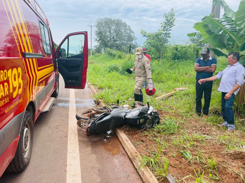 Corpo de Bombeiros de Bela Vista atende motociclista vítima de acidente de trânsito no Costa e Silva