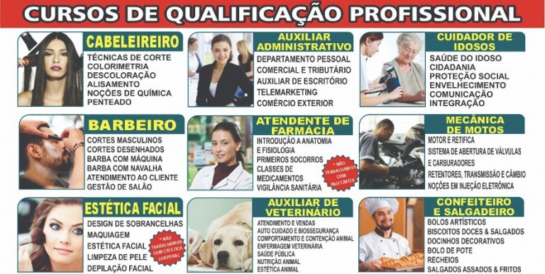 Todos os cursos são para jovens e adultos, a idade mínima é de 12 anos. Com duração de 3 a 4 meses, as aulas são presenciais e práticas.