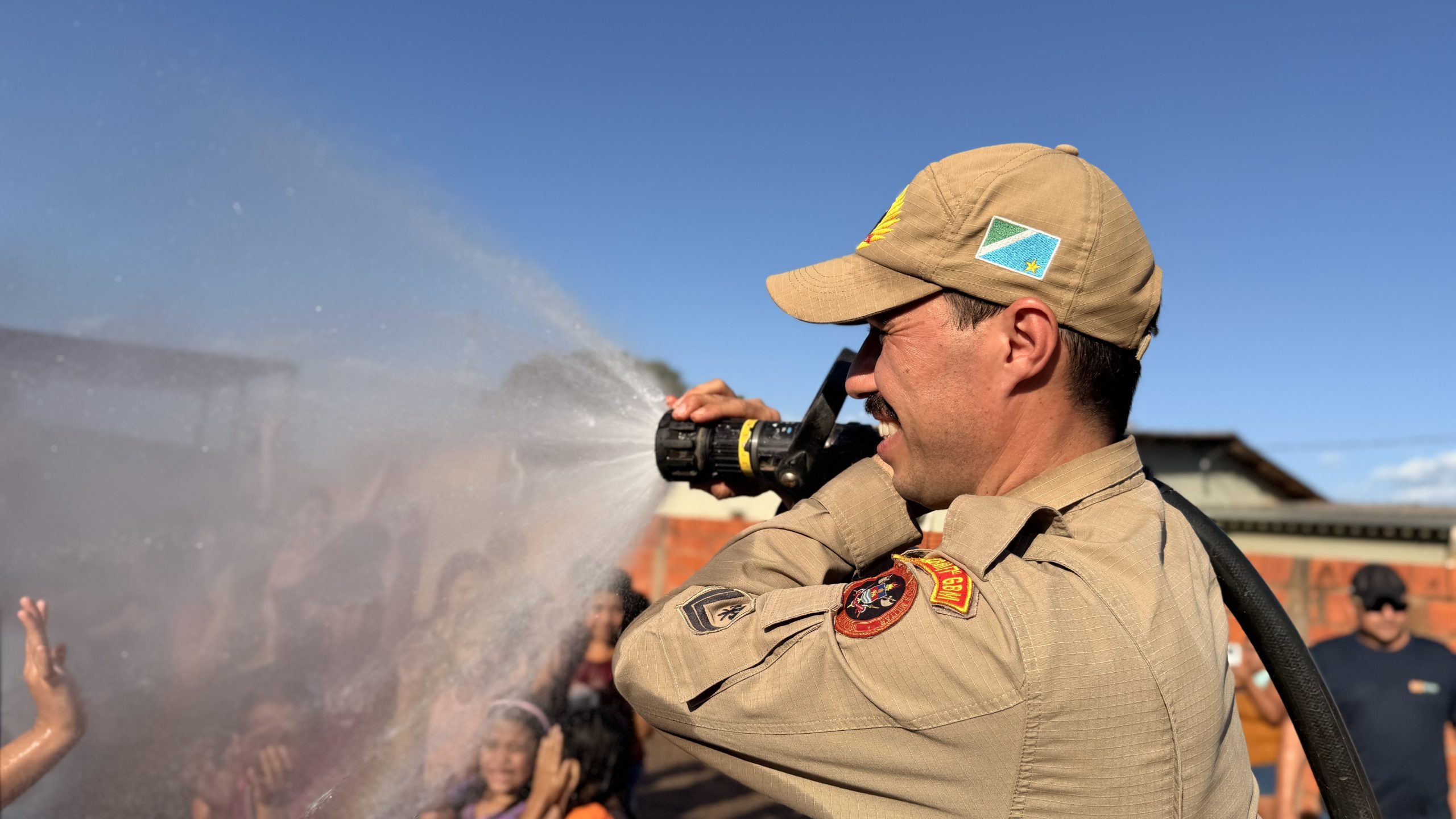 Um dos momentos mais animados foi a participação do Corpo de Bombeiros de Bela Vista, que interagiu com a criançada e proporcionou uma divertida brincadeira ao molhar os participantes, gerando muitas risadas e tornando o dia ainda mais inesquecível.