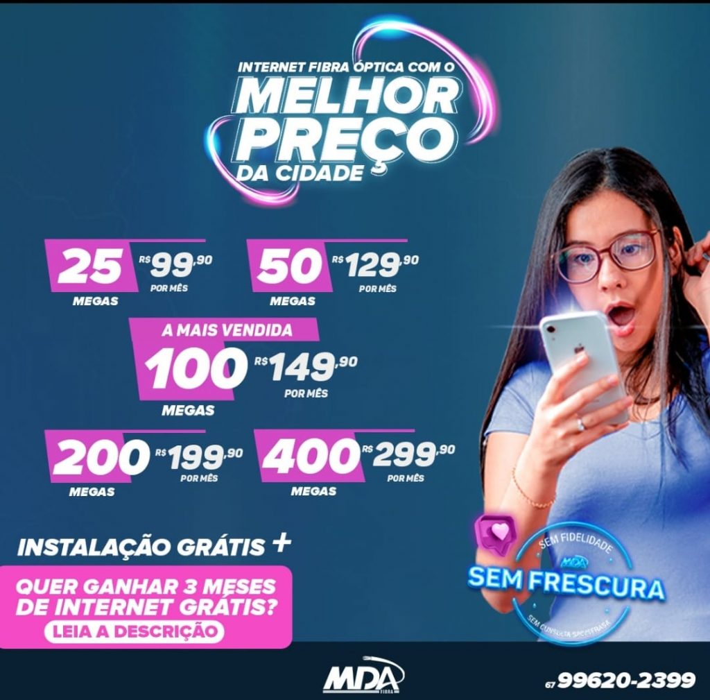 A empresa MDA FIBRA ÓPTICA acaba de lançar mais uma mega promoção para este mês de Junho. A oferta especial ainda disponibiliza instalação grátis para todos que assinarem um dos seguintes planos.