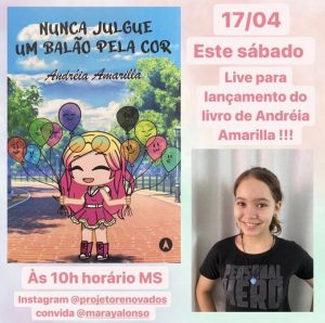 O lançamento oficial da obra infanto-juvenil “Nunca Julgue um Balão pela Cor” acontece de forma virtual, através de uma live que será transmitida pelo instagram, nos seguintes perfis: @projetorenovados e @marayalonso. A transmissão terá início às 10h00, deste sábado (17).