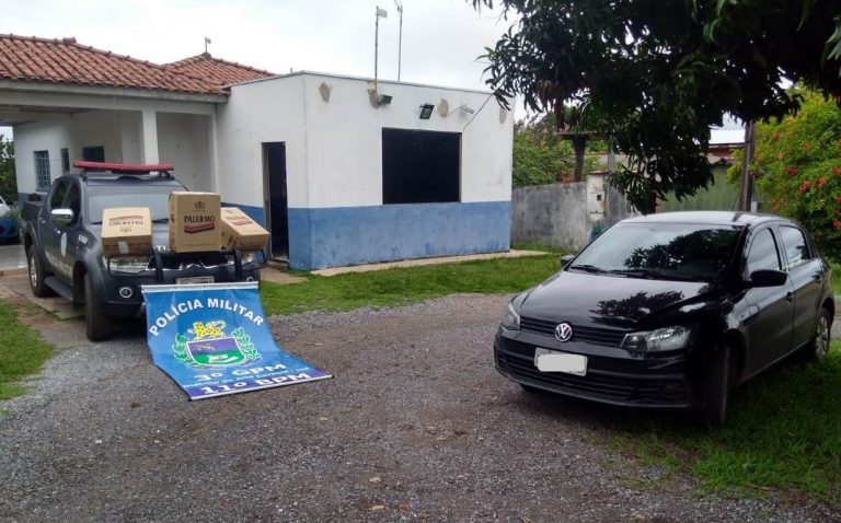 Ao ser realizada a busca veicular, os policiais localizaram, no interior do automóvel, três caixas de cigarros de origem estrangeira, que totalizaram 150 pacotes.