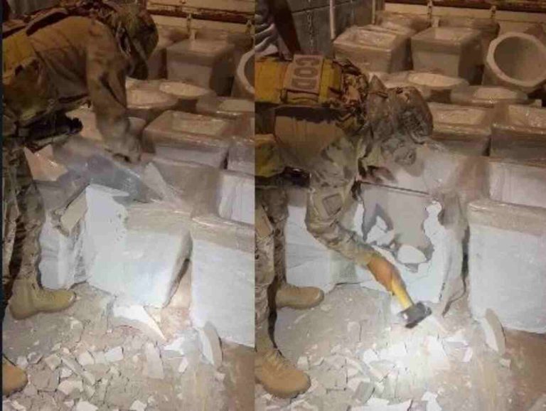 Para terem acesso à droga, os policiais usaram marretas para destruir os vasos de cimento e localizar entorpecente que foi embalado em Ponta Porã, na fronteira com o Mato Grosso do Sul.